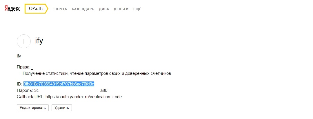 В результате получаем токен. Если у вас зарегистрировано несколько счетчиков на одном аккаунте Яндекса то токен для других будет этот же.
