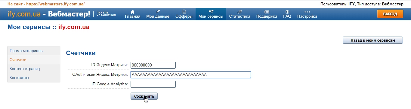 OAuth-токен Яндекс Метрики: и нажимаем