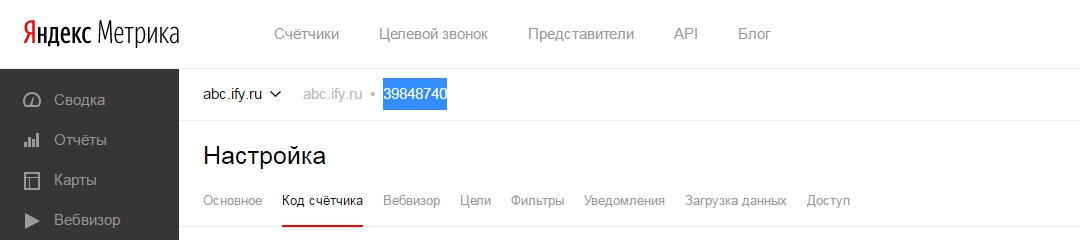 1. ID Яндекс Метрики:
